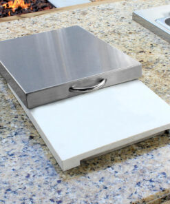 This Alfresco Prep & Waste Chute features All commercial stainless steel construction and Professional-style poly sliding cutting board. Stainless steel cover removes to reveal a poly cutting board. which slides to reveal the waste chute – makes disposing of cutting board scraps as easy and clean as possible.