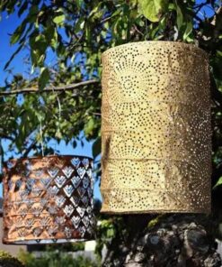 So beautiful. you’ll forget it’s made for the outdoors. With a floral pattern exquisitely punched in ultra-durable Tyvek (the same material used to wrap houses in construction) and dyed a rich bronze. the cylinder solar lanterns can hang from a limb. line or hook or sit on a table. Compact 7.5 x 5 is great for displaying in pairs or bunches. Includes two LED lights. solar panel. AAA Rechargeable Battery and stainless steel hardware.