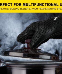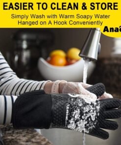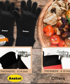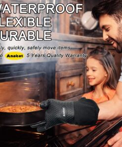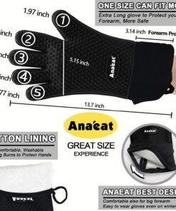 Anaeat BBQ Grilling Gloves Heat Resistant. Versatile Waterproof Cooking Gloves – 100% Cotton Lining Silicone Oven Mitts. Flexible Potholder for Barbecue. Baking – Thick Long Wrist Protection (Black)