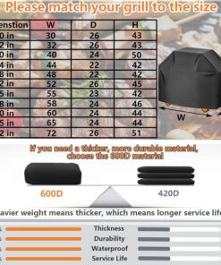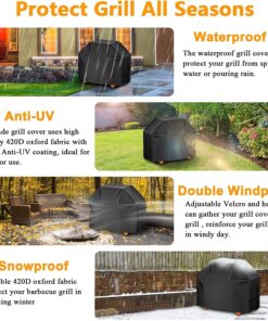 - ☀️【Waterproof & Snowproof & Anti-UV】- Made of upgraded fabric.the bbq grill cover exhibits superior colorfastness. resists UV. repels rain. resists tears and cold cracking. durable and long-lasting. gives your grill all year round protection against sun. rain. snow. hail. wind. dust. dirt and etc.