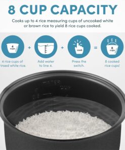 - Perfectly prepares 2 to 8 cups of any variety of cooked rice or grains