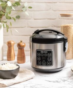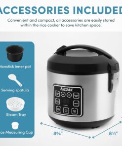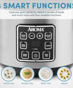 Elevate your home cooking with the Aroma® 8-Cup (Cooked) Digital Rice Cooker & Food Steamer. Enjoy restaurant-quality rice. wholesome steamed meals. and mouthwatering one-pot creations—all at the push of a button. The included Flash Rice function is perfect for those moments when you need rice in a flash. With this function. your rice will be ready in no time. simplifying meal preparation. Plus. it’s dishwasher safe. ensuring stress-free cooking and easy cleanup. The compact design accommodates 2 to 8 cups of any rice variety. with specialized settings for White and Brown Rice. Once your rice is perfectly cooked. the cooker automatically switches to Keep Warm. eliminating the need for constant monitoring or stirring. The included steam tray lets you enjoy healthy steaming of meats and vegetables while your rice cooks below. And it’s not just for rice—use it for oatmeal. chili. jambalaya. soups. and more. The Delay Timer caters to your busy lifestyle; simply set it in the morning. and return to perfectly cooked rice when you’re ready to serve.
