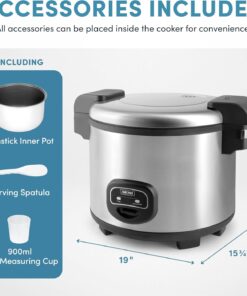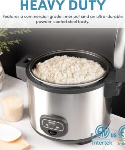 this convenient cooker’s generous Capacity perfectly cooks up to 60 Cups of any variety of rice. It automatically senses when rice is done and switches to keep-warm for fresh rice all day. The durable cool-touch body and heavy-duty stainless steel lid and aluminum cooking pot are designed for continuous use so you can count on batch after batch of flawless rice coming out of your kitchen.
