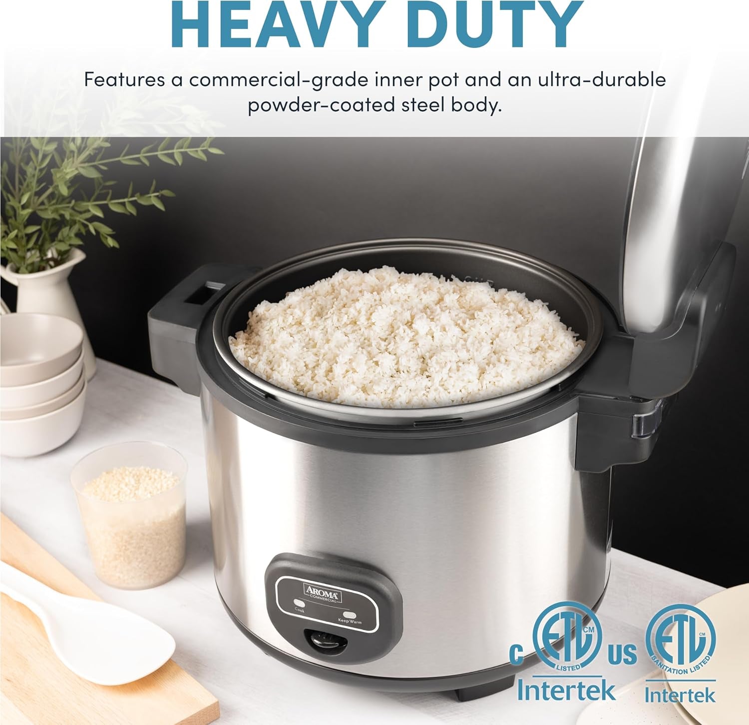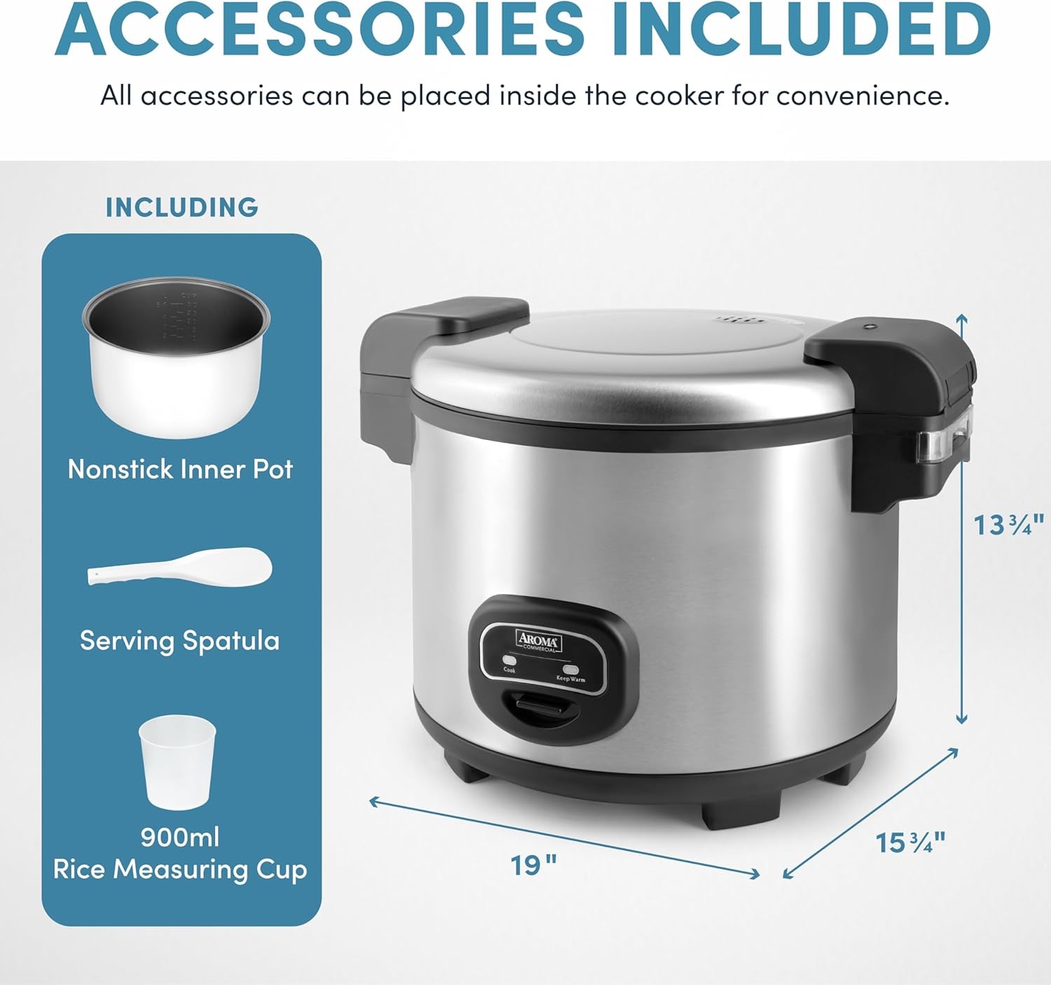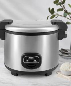 Save an abundance of time and energy with the aroma 60-cup (cooked) commercial rice cooker. Simply add rice and water. Press a button and walk away! Aroma takes the cook’ Out of cooking rice – leaving you free to work on other things in the kitchen. You won’t know how you lived without it!