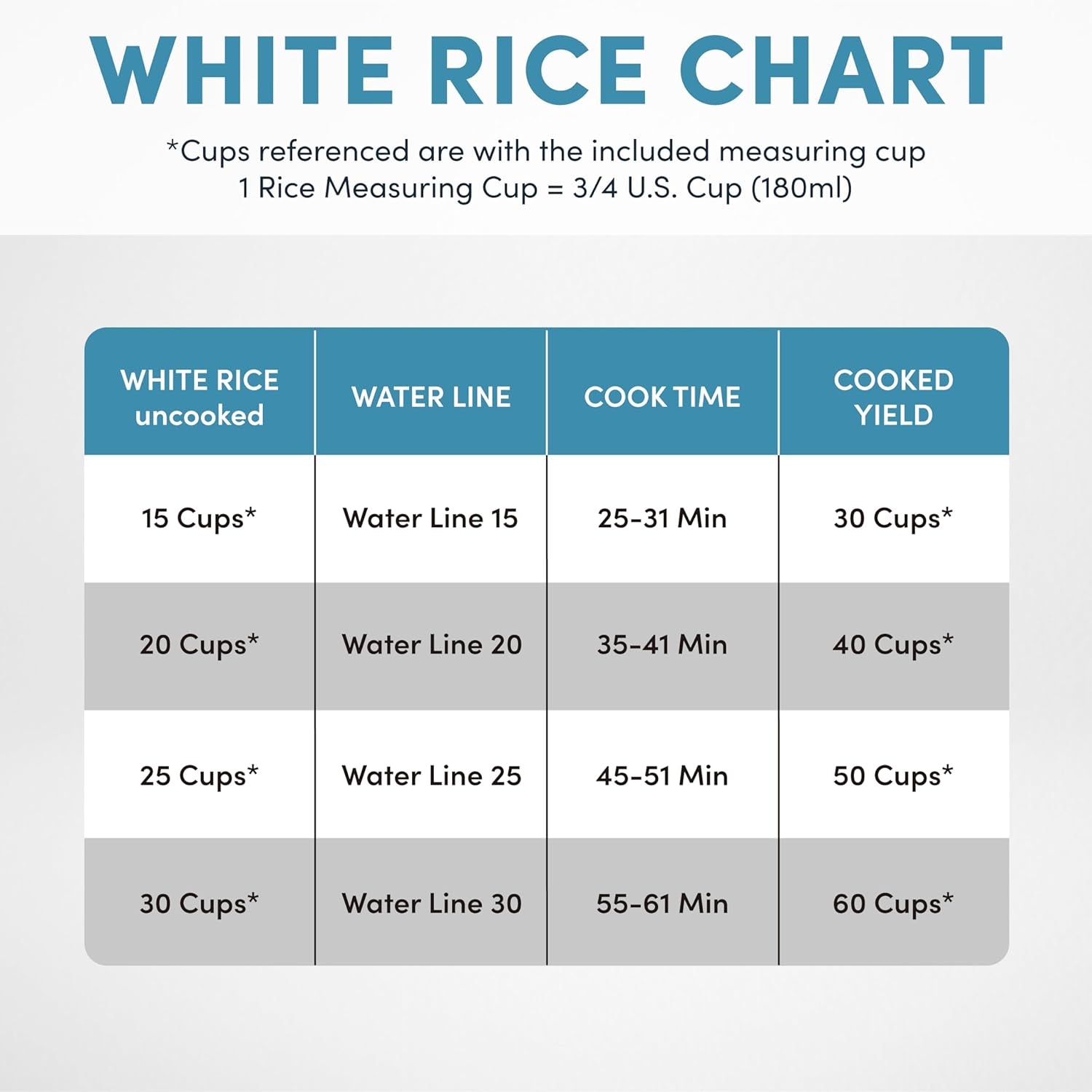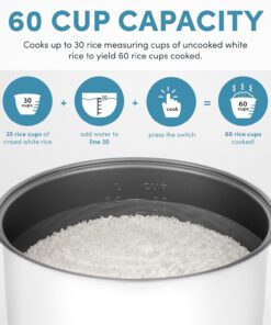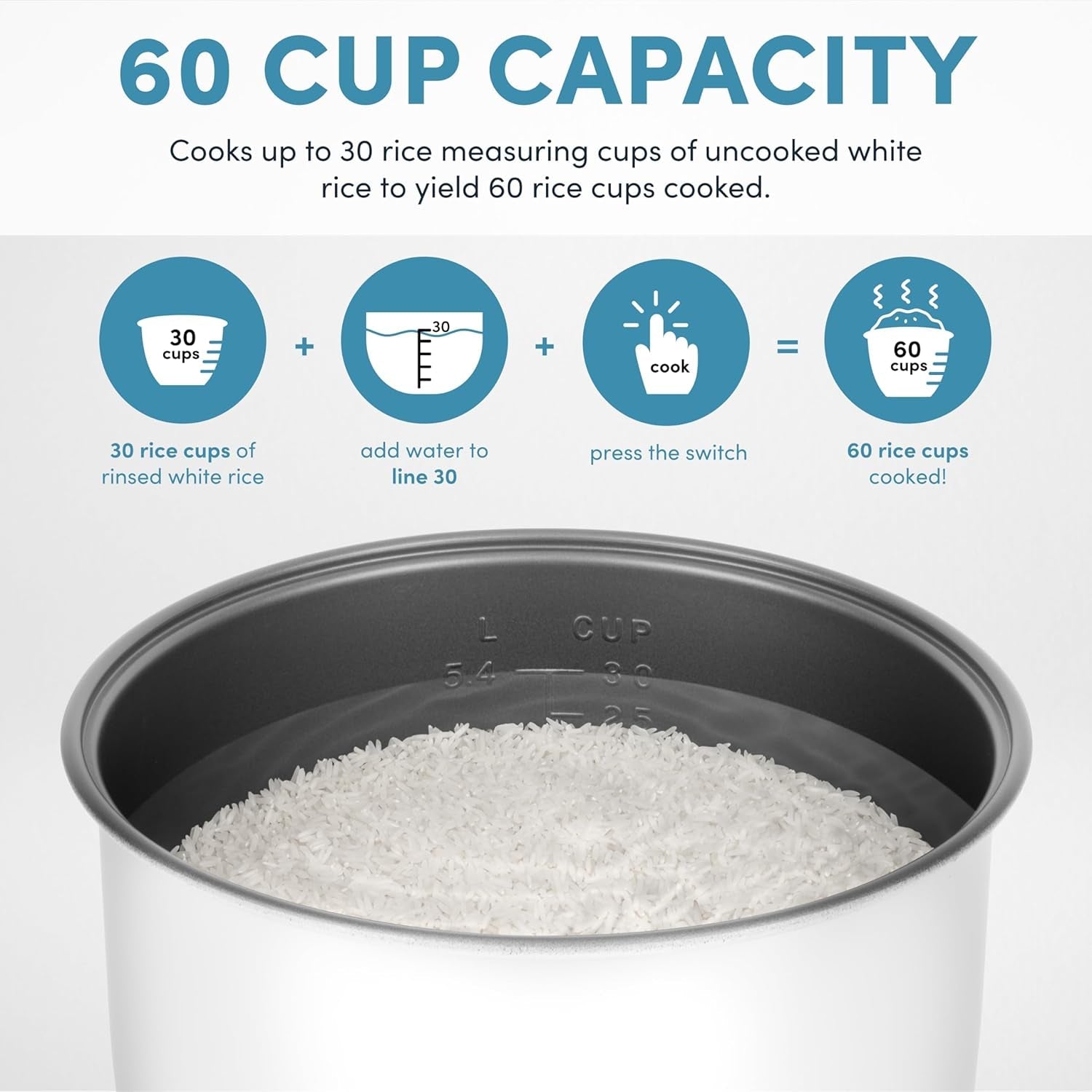 - Perfectly prepares up to 60 cups of any variety of cooked rice