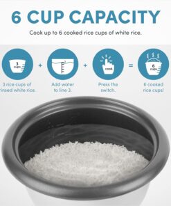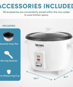 Aroma Housewares Aroma 6-Cup (Cooked) 1.5 Qt. One Touch Rice Cooker. White (ARC-363NG). 6 Cup Cooked/ 3 Cup Uncook/ 1.5 Qt.