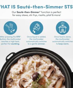 - Nutritious & Delicious – The built-in steam function allows for nutrient-rich meals to be prepared above while rice. soup. or any other meal addition cooks below. allowing you to save time without sacrificing quality. This multicooker not only includes all of your favorite cooking options. but also possesses the unique features of Slow Cook and Saute-then-Simmer STS. making meals rich. tasty. and a family favorite.