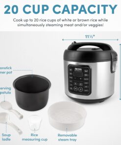 Enjoy easy home cooking with the AROMA 20-Cup (Cooked) Rice Cooker. Food Steamer and Slow Cooker. Restaurant-quality rice. Healthy steamed meals. Delicious one-pot dishes. Prepare all this and more at the touch of a button! AROMA takes the cook out of home cooking – turning kitchen time into your time! Help the kids with homework. get creative at play time or pick up that novel you’ve been waiting to dive into. All while delivering hot. hearty and healthy meals the entire family will love.
