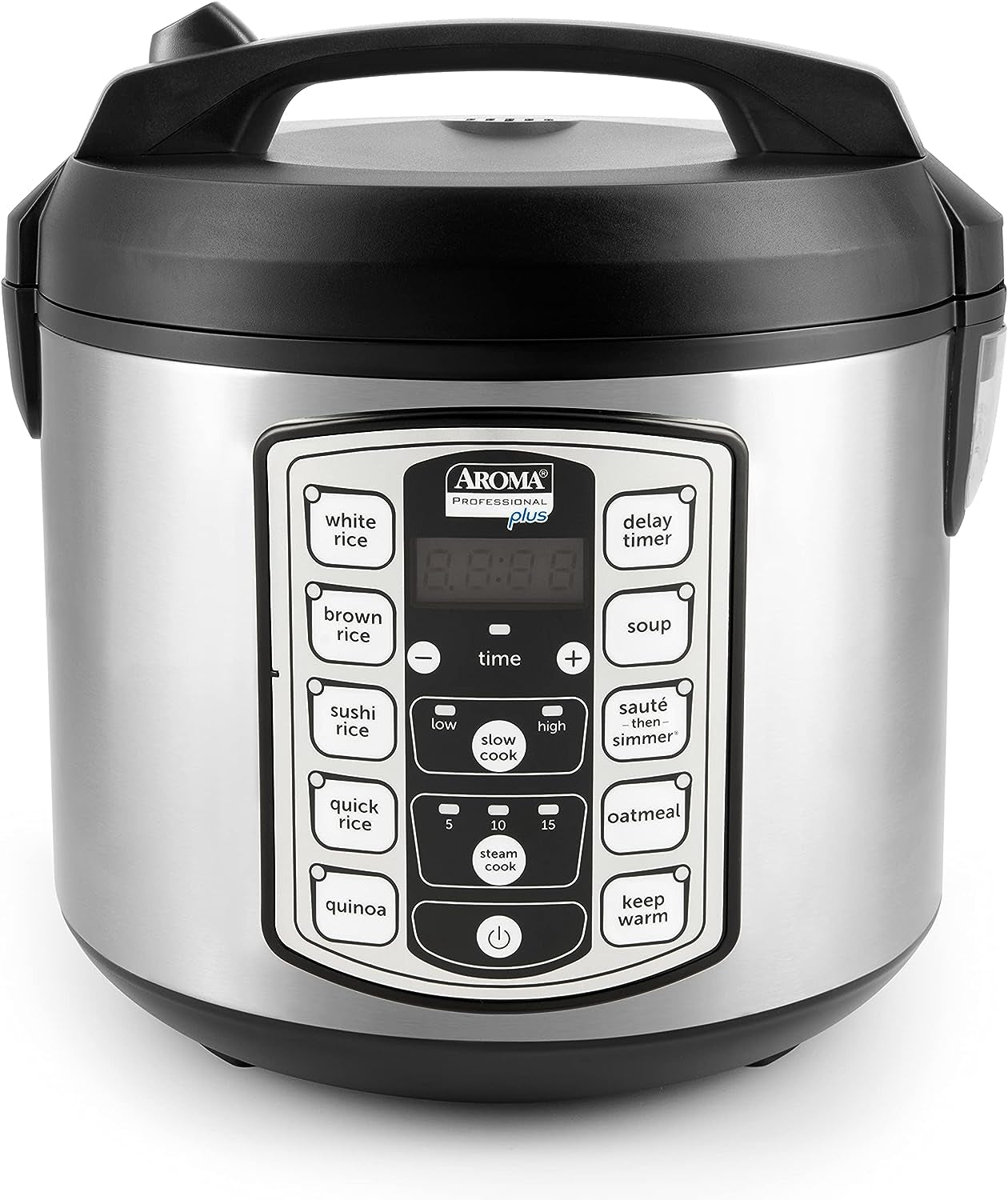 This convenient cooker’s generous capacity perfectly cooks 4 to 20 cups of any variety of rice with specialized functions for both White and Brown Rice. Once the rice has finished. it will automatically switch to Keep-Warm so there’s no need for monitoring or stirring. The Steam Tray allows for healthy steaming of meats and vegetables. even as rice cooks below! Need rice in a pinch? Save time with the Quick Rice function which cuts cooking time by up to 50%. AROMA’s Slow Cook function transforms your rice cooker into a 4-quart slow cooker. furthering its use as a meal-making powerhouse. With AROMA’s patent-pending Saut?-Then-Simmer STS function you can further automate your kitchen. Reaching a high heat to saut? or brown foods then switching over to a simmer once liquid is added. this time-saving function is the perfect choice for Spanish rice. chili. risotto. packaged meals and much more! The programmable 15-hour delay timer is great for families on the go. delivering delicious rice ready when it’s needed. And when the cooking is done. the inner cooking pot and all accessories remove for easy cleanup in the dishwasher. BPA free