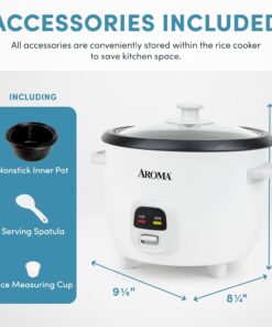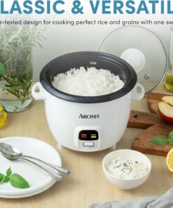 AROMA Rice Cooker. 3-Cup (Uncooked) / 6-Cup (Cooked). Small Rice Cooker. Oatmeal Cooker. Soup Maker. Auto Keep Warm. 1.5 Qt. White. ARC-393NG