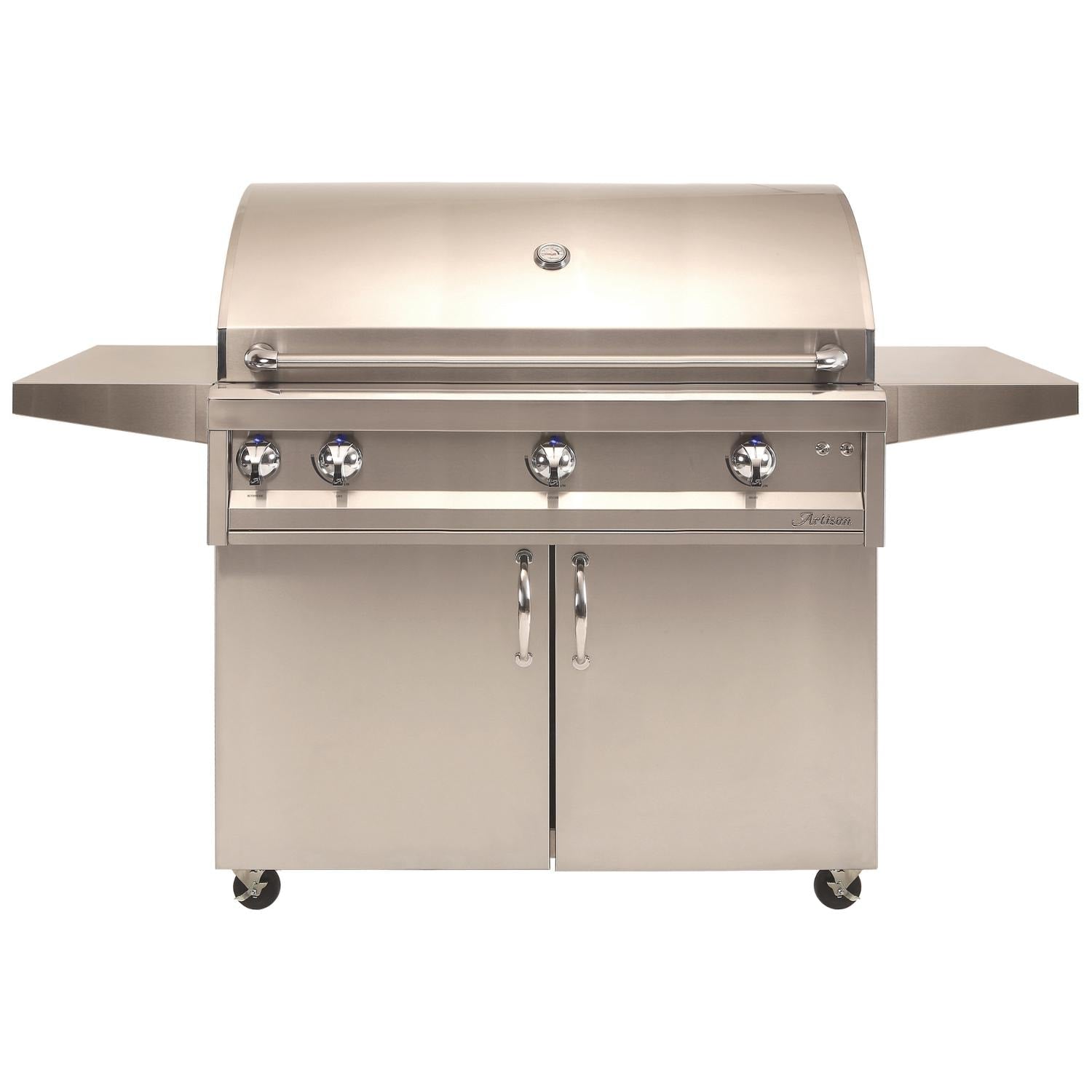 The Artisan Professional Series ARTP-42C-LP Freestanding Propane Gas Grill offers a premium grilling experience with its exceptional features and high-quality construction. Made in the USA from 304 stainless steel. this freestanding grill features a seamless welded double-walled hood for excellent heat retention. With three stainless steel U-burners. ceramic briquettes for even heat distribution. a powerful electronic ignition system. a heavy-duty rotisserie system with a ceramic rear infrared burner. and a host of convenient features. this grill provides outstanding performance and versatility. The included stainless steel cart adds mobility and extra storage space for a complete grilling solution.