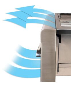 - Unique Artisan air curtain chimney design keeps controls cool to the touch
