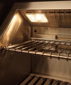 - Features a heavy-duty rotisserie system with a 15.000 BTU ceramic rear infrared burner