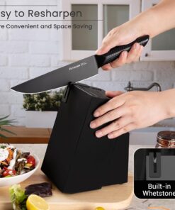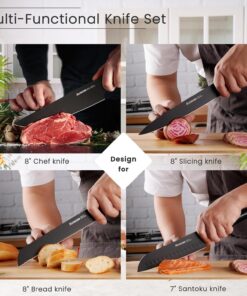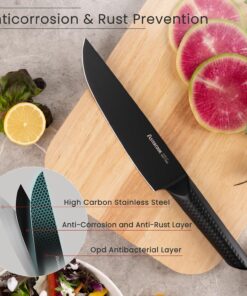 - Sharp & Rust Resistant – Black kitchen knife set uses a unique anti-rust. anti-stick and anti-oxidant Teflon coating. so that the blade is always in the best condition. extremely easy to clean. greatly extending the life of the knife.