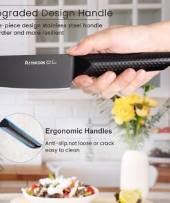 - Upgraded Design Handle – Astercook Knife Set is made of German high carbon one-piece stainless steel forging. which makes the handle and the knife body less prone to break. the ergonomic handle makes the knives very comfortable to use. the stainless steel handle and the non-slip air holes make the knives more secure and sturdy. ensuring safety and enjoyment when making delicious food.