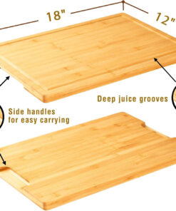 - Large Cutting Board & Charcuterie Board: 18 x 12. large and stable. won’t slide on counter while using it. Can be served as a large charcuterie board as well on a family party.