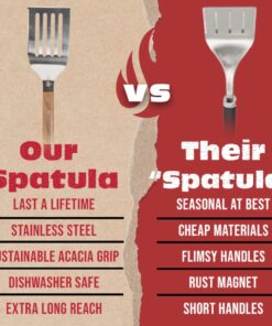- EXTRA LONG HANDLE TO AVOID HEAT – With our high-quality stainless steel core and extra long wood handle. this is a perfect-length cooking spatulas. Never worry about feeling the heat when grilling again. Ideal gift set and high quality.