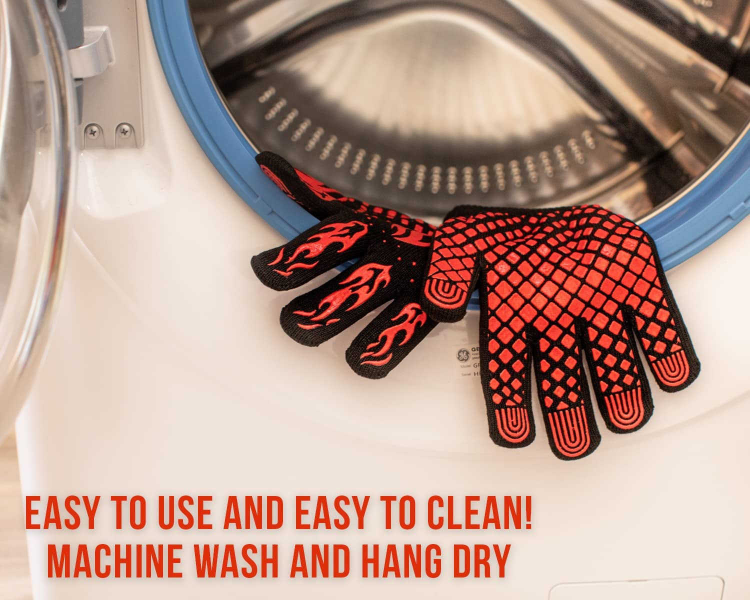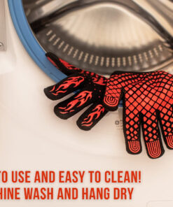 - EASY CLEAN & STORE: Our Heat Resistant Grill Gloves are not just designed to protect hands from heat – they are also incredibly easy to clean and store. Made from high-quality materials. these gloves can be machine washed or hand washed without losing their shape. With a loop inside the cuff for easy storage and drying. they can be used again and again without any hassle.