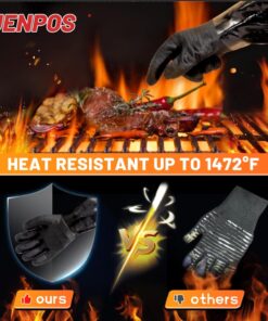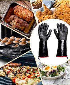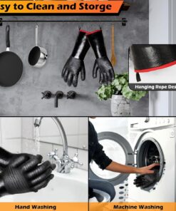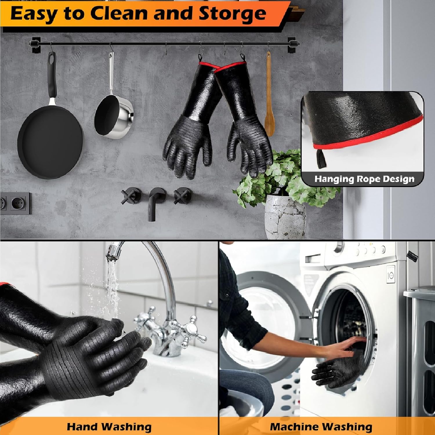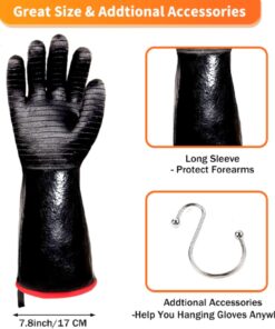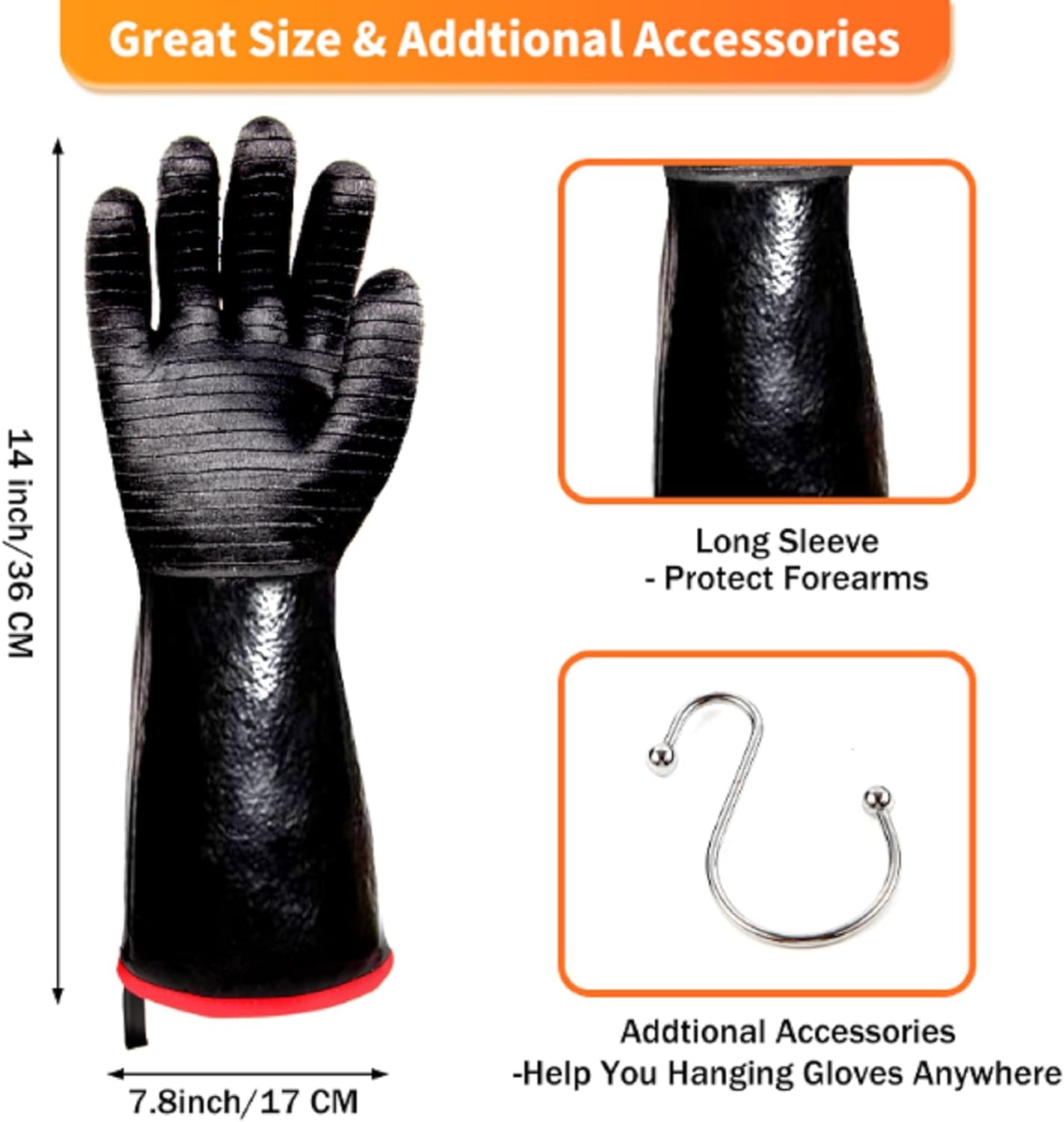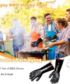 BBQ Gloves – 1472°F Thicken Heat Resistant Gloves W/S-Hook 14 in Kitchen Oven Mitts Waterproof Grill Gloves Oil Resistant Grilling Gloves Cooking Gloves for Turkey Fryer/Baking/Oven/Smoker