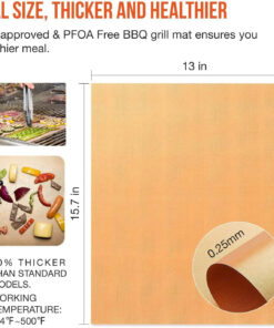 This grill mat is made from 100% PFOA-free materials and premium PTFE fiberglass coating.