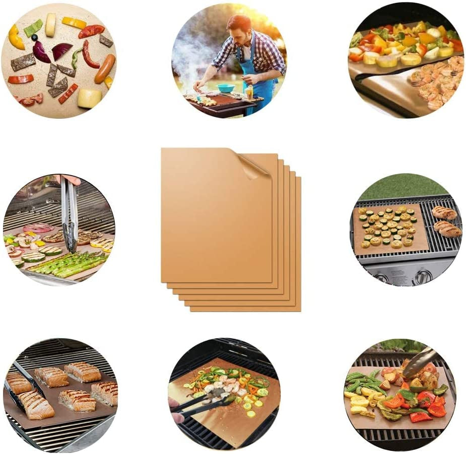 - 100% Non-Stick -100% Non-Stick grill mats means you could grill without grease and mats are reusable for years.The copper grill mat prevent even the smallest morsels from falling through the grates. Keep your grill looking like brand-new and no more clean-up of your dirty grill.