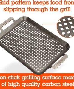 - Grill pans perforated grilling source enhances meal’s natural flavors and grid pattern keeps food from slipping through the grill grates
