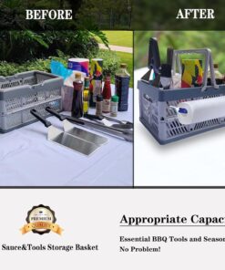 - WIDELY APPLICABLE – BBQ Sauce&Tools Storage Basket.It can be used for camping. hiking. barbecue. family gatherings. etc.. providing more convenience for your presence.