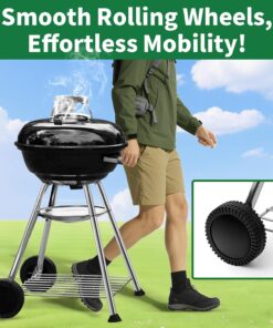 Sturdy frame and connection design makes this grill durable with insulated handles. durable wheels. Portable for outdoor grilling with lid hanger and ash catcher for easy cleaning.