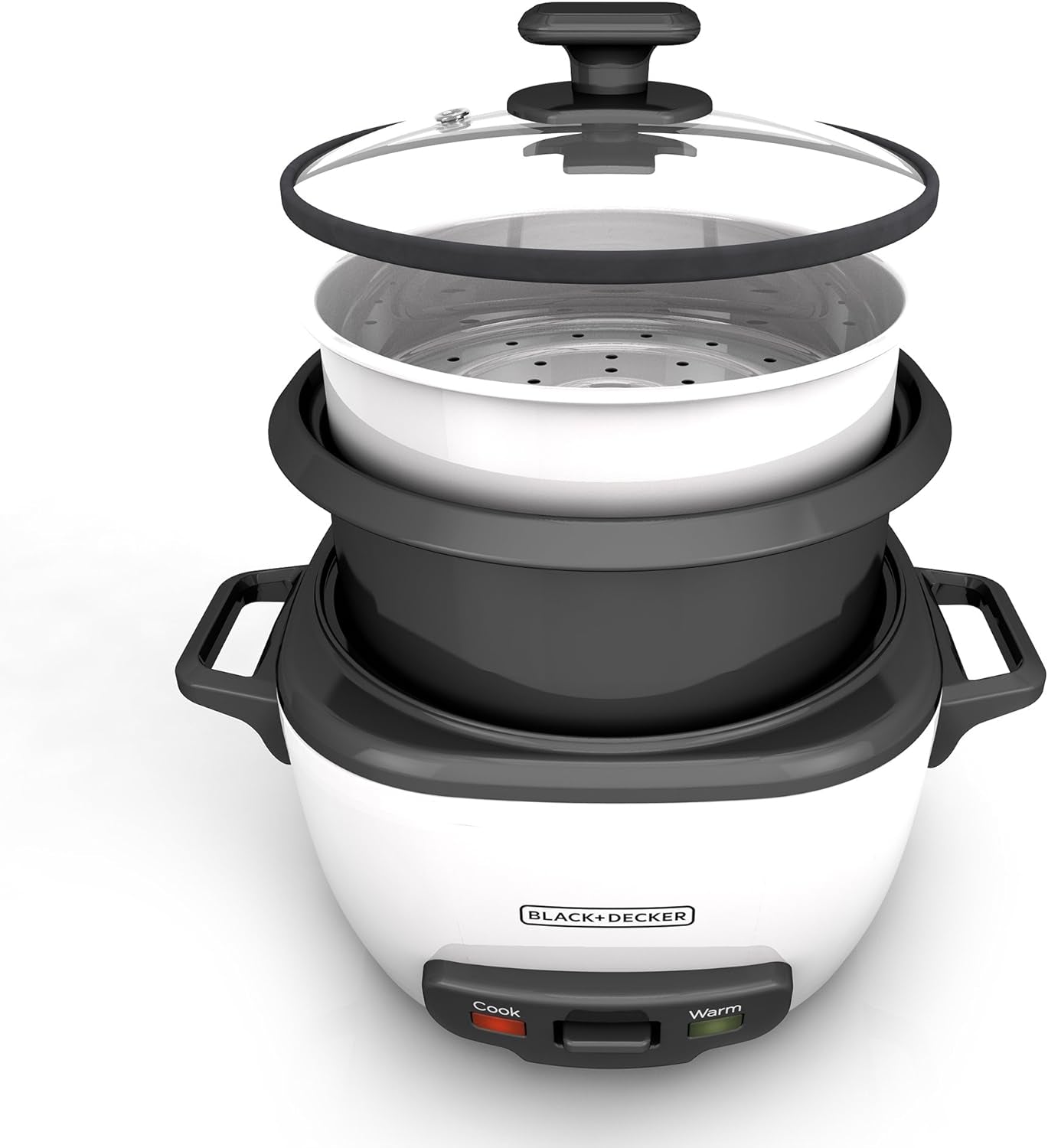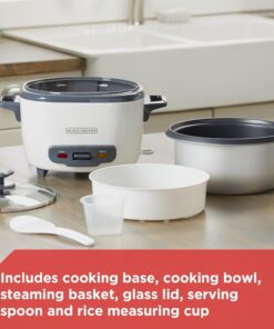 BLACK+DECKER Rice Cooker 28 Cups Cooked (14 Cups Uncooked) with Steaming Basket. Removable Non-Stick Bowl. White