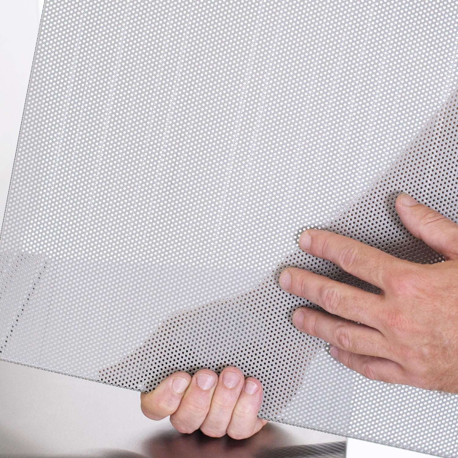 - Perforated screen sits in drip tray. preventing grease fires