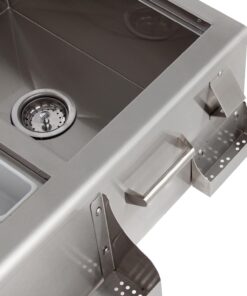 Blaze BLZ-30CKT-SNK Beverage Center provides a high quality outdoor kitchen component to complete your ultimate outdoor BBQ paradise. This unit features a 304 stainless steel construction with smooth welded joints for a blend of style and durability that will stand up to the elements in any climate. a hot and cold faucet. insulated ice bin. and front bottle storage offer a full-featured design to help you get the most out of your outdoor kitchen. Additionally. a soap dispenser. removable cutting board. towel rack. bottle opener. and removable 3-part condiment tray offer even more convenience. The entire line of Blaze outdoor kitchen equipment features the same polished stainless construction for a matching stylized look to transport your kitchen outdoors.