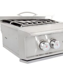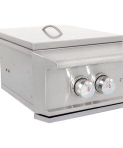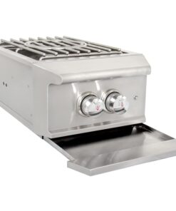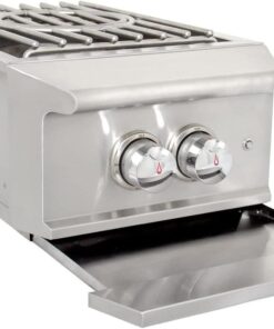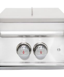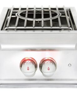 Introducing an affordable power burner that incorporates a narrow footprint and an efficient design which boils water in half the time as other power burners on the market. At 15 3/4 inches wide. the Blaze Professional LUX Power Burner gives you more room for additional components or more counter space for prepping and other tasks. Blaze power burners are made from stainless steel and include a removable stainless steel lid to protect the burner when not in use. The cooking grid is constructed from heavy-duty stainless steel rods with a removable 9-inch inner ring for cooking with a wok. Underneath the grid. a stainless steel guard surrounds the burner. which protects it from the wind and concentrates heat for maximum efficiency. This propane gas power burner features two. individually controllable burner rings. The inner ring is rated for 25.000 BTUs. and the outer ring is rated for 35.000 BTUs. The burners are lit with a simple push and turn ignition. This dual ring design is ideal for cooking versatility. The inner burner is great for simmering sauces. or use both burners when boiling shrimp or frying fish. Cooking with the outer ring is perfect for large skillets and pans. as the high heat allows the pan to heat up quickly. The burner ring is made from commercial quality. 304 cast stainless steel for longevity. This power burner also sports red LED control knob illumination for cooking and entertaining at night. If you are looking for an affordable power burner so you have more in your budget for other components. Blaze power burners are a great solution. A power transformer is included for the lights.