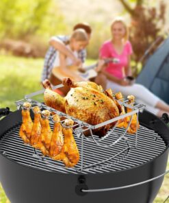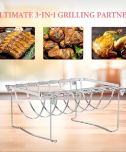 - ✅【Delicious Roasted Chicken】Our 3-in-1 chicken leg rib rack turkey roaster rack and rib rack. for larger family parties. You can flip the ribs into a grilled turkey roaster rack. which can cook 12 Chicken Leg Wing. 6 Large Ribs. 1 Whole Chicken at a time. You can also place the turkey rack on a plate filled with vegetables before grilling. so you can get more juicy and delicious vegetables. You can cook any grilled chicken you want with your family at a party.