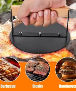 - Sturdy Wide Wood Handle: This iron burger grill press is easy to hold and use. The burger smasher offers you a secure and comfortable grip. Its handle is made of natural wood. heat-resistant and smooth without burrs. The wood handle is firmly fixed to the iron metal with four screws. preventing it from falling or losing.