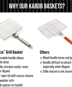 - REMOVABLE HANDLE – Closing your grill while cooking with your vegetable grill basket is an issue no more. The quick release handle comes off your fish basket with a push of a button. Handle works with other Braize barbecue accessories as well.