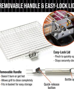 - SECURE LATCH – No worries about losing you food on the grill. The pinch latch design makes it easy to open and close your veggie grill basket while keeping your food secure.