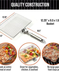 - LARGE CAPACITY – Cook an entire meal at once. 12.25 x 9.5 x 1.5. perfect as a fish basket for grilling or grill vegatable basket. So many uses with your large grill baskets for outdoor grill.