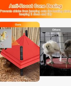 - Anti-Roost Cone Design: Features a protective cone to prevent chicks from perching or soiling the heating plate. maintaining cleanliness and functionality