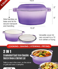 SKU: 8533898395806-bruntmor-2-in-1-enamel-cast-iron-dutch-oven-with-handles-crock-pot-purple-cast-iron-pot-with-skillet-lid-all-in-one-cookware-braising-pan-for-casserole-dish-5-quart-purple-30736179