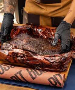 Master competition-quality brisket with Pit Boss Grills professional-grade butcher paper. This high-quality wrapping paper is excellent for sealing in juices and creating a crispy outer layer during cooking. Use to wrap and cook meats like brisket. whole chickens. vegetables. fish. and lamb. Unlike aluminum foil. it will allow your food to breathe and stay tender and flavorful during cooking. It can be used to smoke meats. line baking trays. wrap gifts. and more. Pit Boss Grills Butcher Paper will hold up against moisture buildup and high cooking temperatures.