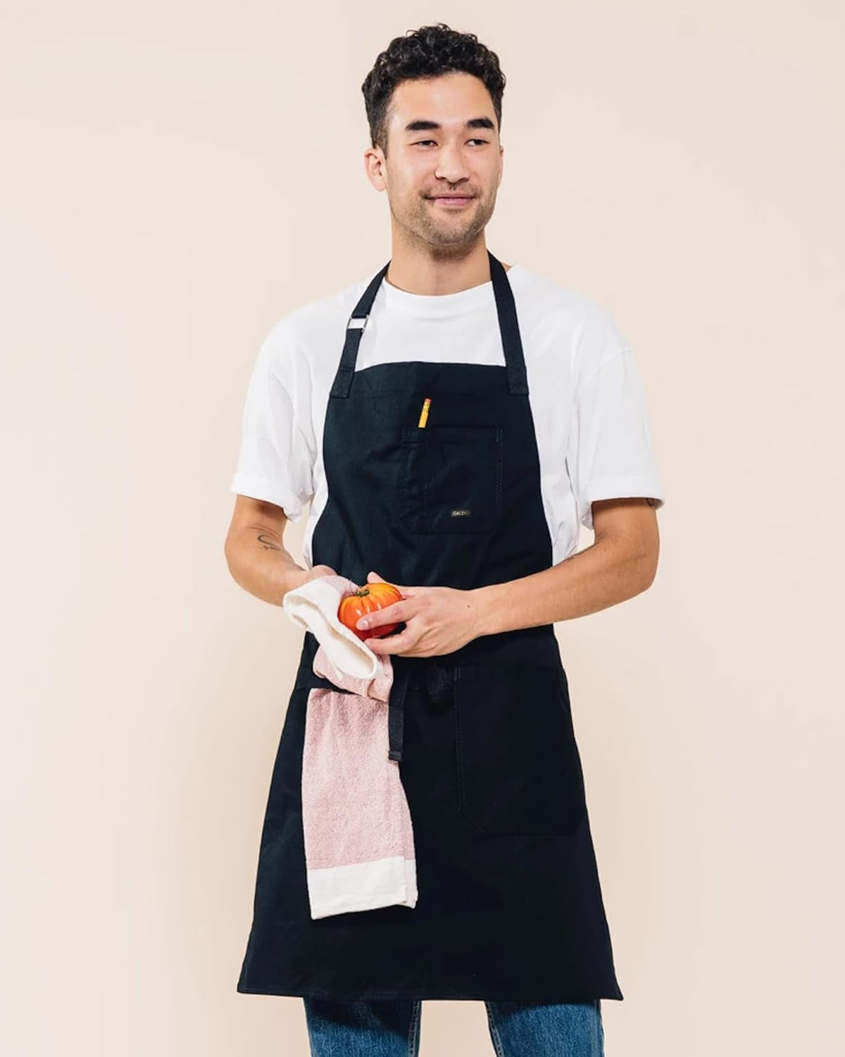 - STAY STAIN-FREE: Don’t ruin your favorite clothes in the kitchen — keep clean with this protective bib apron (that goes perfectly with your stylish knife set and kitchen towels).