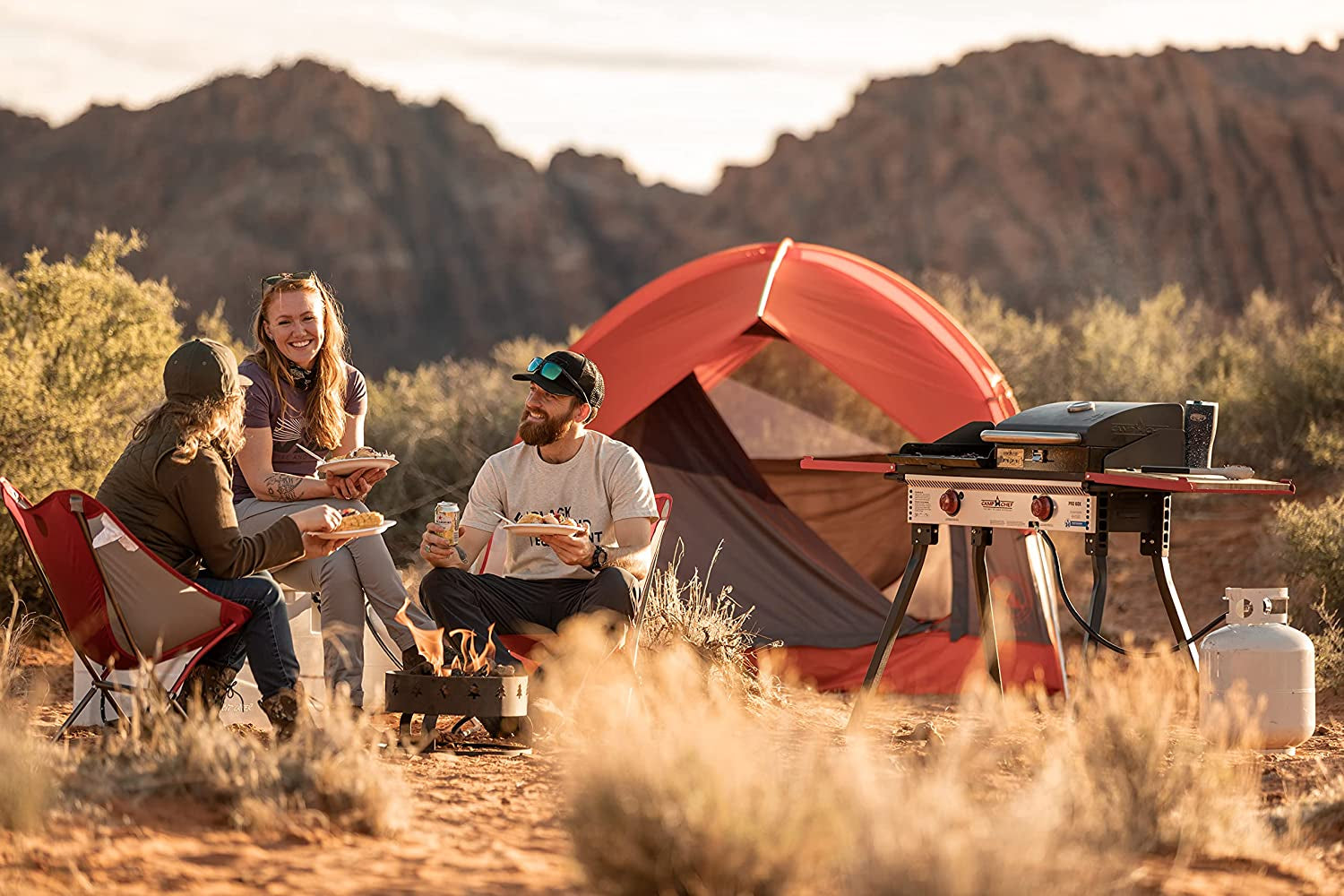We’ve raised the steaks in the outdoor cooking industry. So. we challenge you to ask yourself if your cooking equipment is tough enough for the task. Whether you’re barbecuing on the back patio or backpacking in Bolivia—delicious food is attainable despite your coordinates. So. get out there. Make memories with the people you love. Experience the beauty of nature. Feed your outside however you want with the durability. versatility. portability. and power of Camp Chef.
