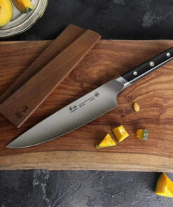 Cangshan TC Series 8in Chef Knife with Sheath is forged from high alloy Swedish 14C28N Steel. the tang of the TC Series knife ensures exceptional sharpness that holds an edge even through rigorous use. The uniquely tapered tang further enhances the knife’s precision. making it ideal for intricate and accurate cutting tasks.