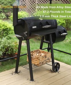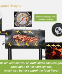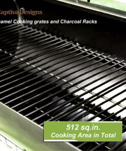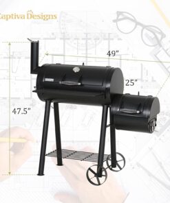 Captiva Designs Charcoal Grill with Offset Smoker. All Metal Steel Made Outdoor Smoker. 512 Sq.In Cooking Area. Best Combo for Outdoor Garden Patio and Backyard Cooking