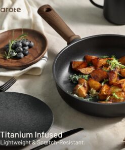 - The titanium nonstick coating enhances durability and performance. ensuring easy food release and effortless cleanup. while its smooth. the surface helps resist stains and odor buildup for a cleaner cooking experience.