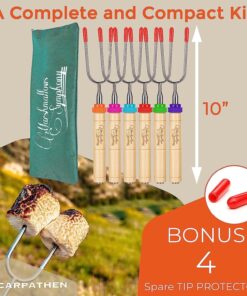 - 👪🏼 Glamping Party Supplies: Fun to use and Easy to Clean. this Premium. stainless steel expandable hot dog sticks for campfire will be a great addition to anyone’s glamping accessories. Kids have a blast using them! You’ll get 6 marshmallow sticks. natural wood handles. 6 different vibrant color rings. tip protectors for safety. PLUS cute Storage Canvas Pouch & Roasting Guide FREE Ebook with Amazing Cooking Recipes. Who knew you could get so excited about smore sticks?