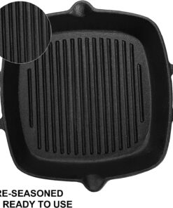 Multiple UsesThese pre-seasoned grill pan are Ideal for Panini sandwiches. steaks. burgers. chops. fish. bacon. sausages. quesadillas. grilled cheese and more! |