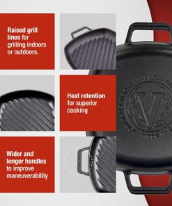 - ROUND OR SQUARE GRILL PAN: The Victoria grilling pan is made with natural materials and is easy to maintain. It’s available in multiple sizes. and each pan is restaurant quality to ensure the perfect dish every time. Give your cooking an upgrade by using cast iron cookware.