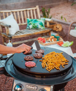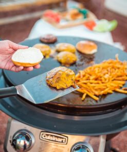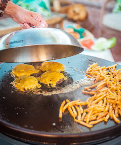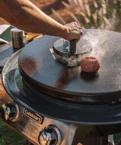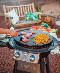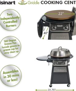 Experience 360° of griddle cooking versatility! Whether you are cooking for a small crowd or a large party. the Cuisinart 360° griddle cooking center will amaze any audience. Breakfast. lunch & dinner. the 22 diameter cooking center can handle it all! It features a 360° grease pan & rear grease cup. making for easy access & clean-up. The cooking center comes with a quick access paper towel holder. It also includes a stainless steel lid with an integrated vent. enhancing the features of a normal griddle! This lid creates versatility to steam. roast. smoke or warm! From eggs & pancakes to burgers or stir-fry. the Cuisinart 360° griddle cooking center gives you the ability to explore your culinary creativity.