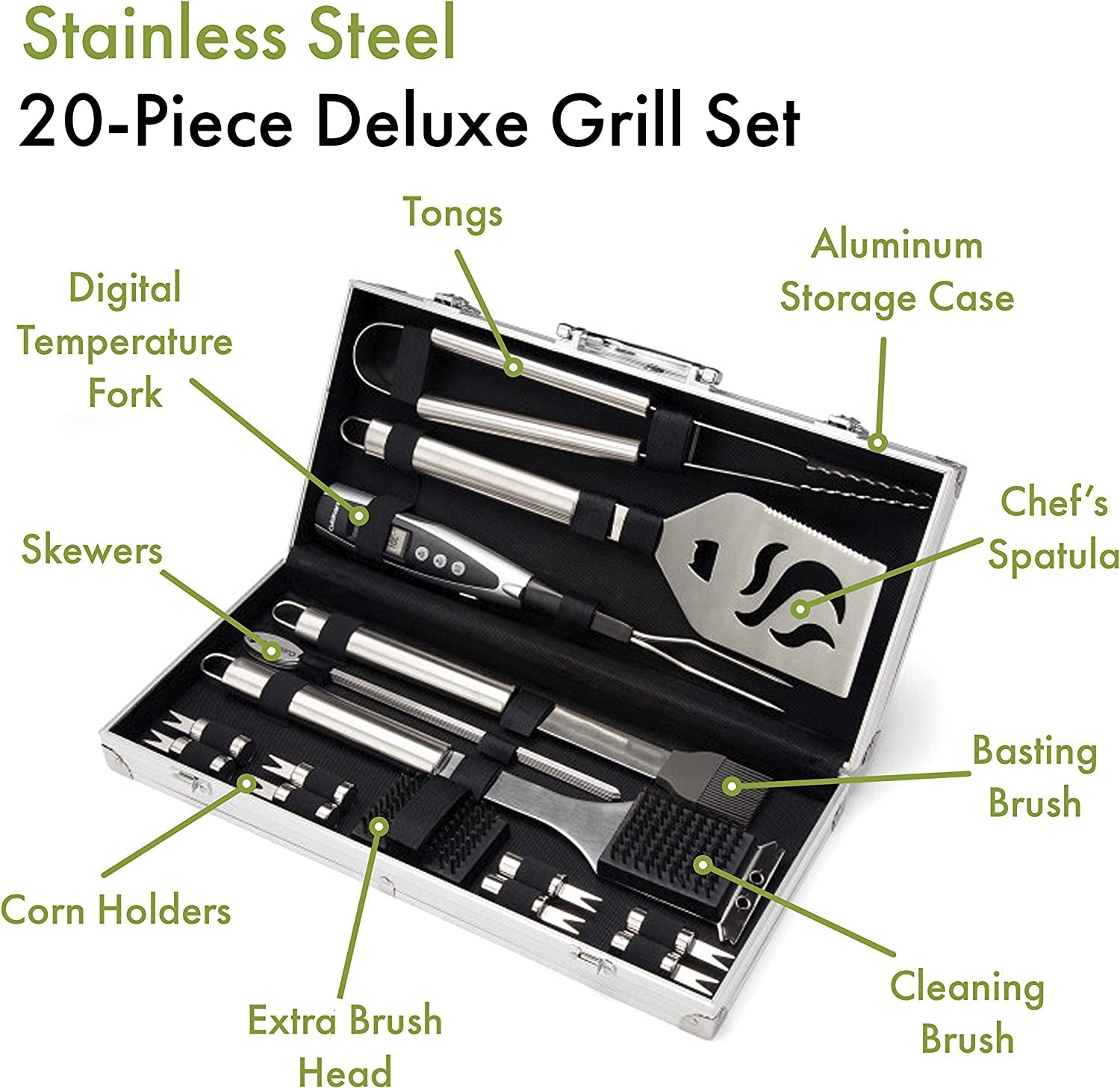 CGS-5020 BBQ Tool Aluminum Carrying Case. Deluxe Grill Set. 20-Piece